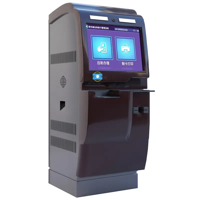 Apply new human-computer interaction, facial recognition RFID、 Barcode and other technologies. We have achieved intelligent and autonomous services such as on-site self-service portrait collection, ID card recognition, IC card verification, self-service processing, document production, and report printing. This self-service certificate issuing machine provides users with affordability and convenience, and also improves the efficiency of certificate processing services, greatly reducing the pressure on window personnel. At the same time, make "convenient services" more deeply rooted in people's hearts.